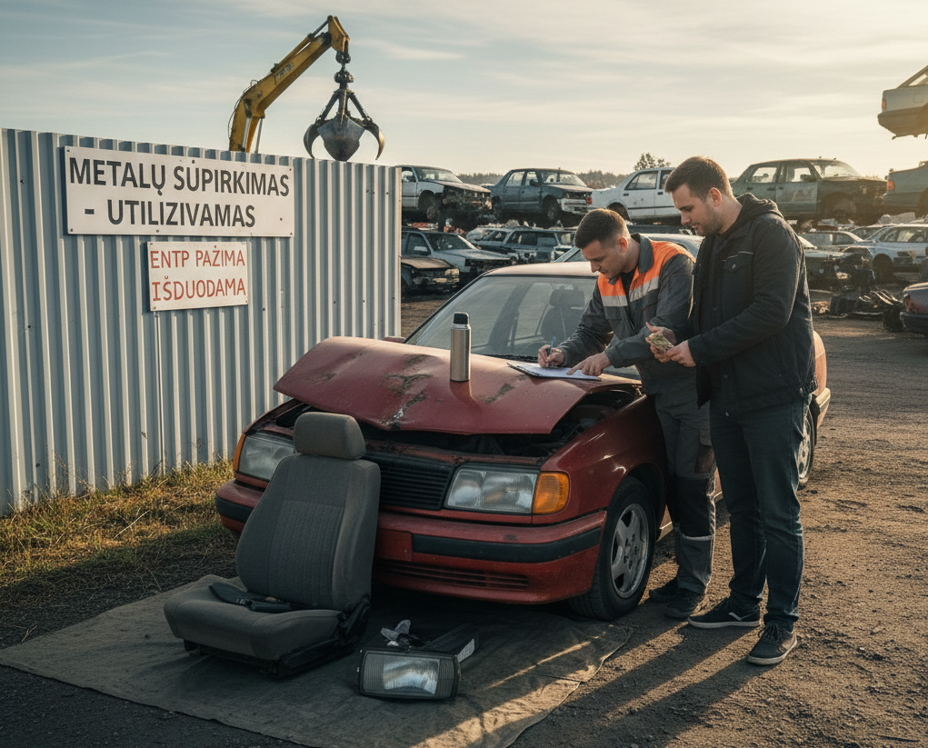 1. Ar galiu pats išsiardyti automobilį detalėms ir tik tada priduoti kėbulą? Teoriškai taip, tačiau oficialiai ENTP pažymai gauti automobilis turi turėti pagrindinius agregatus (kėbulą, variklį, greičių dėžę). Jei priduosite tik „pliką“ rėmą, supirkėjai gali atsisakyti išduoti pažymą arba pareikalauti papildomo mokesčio už trūkstamas dalis.